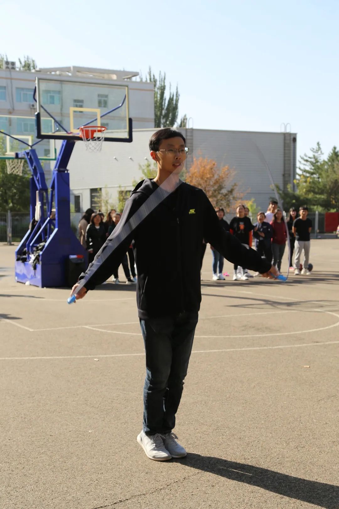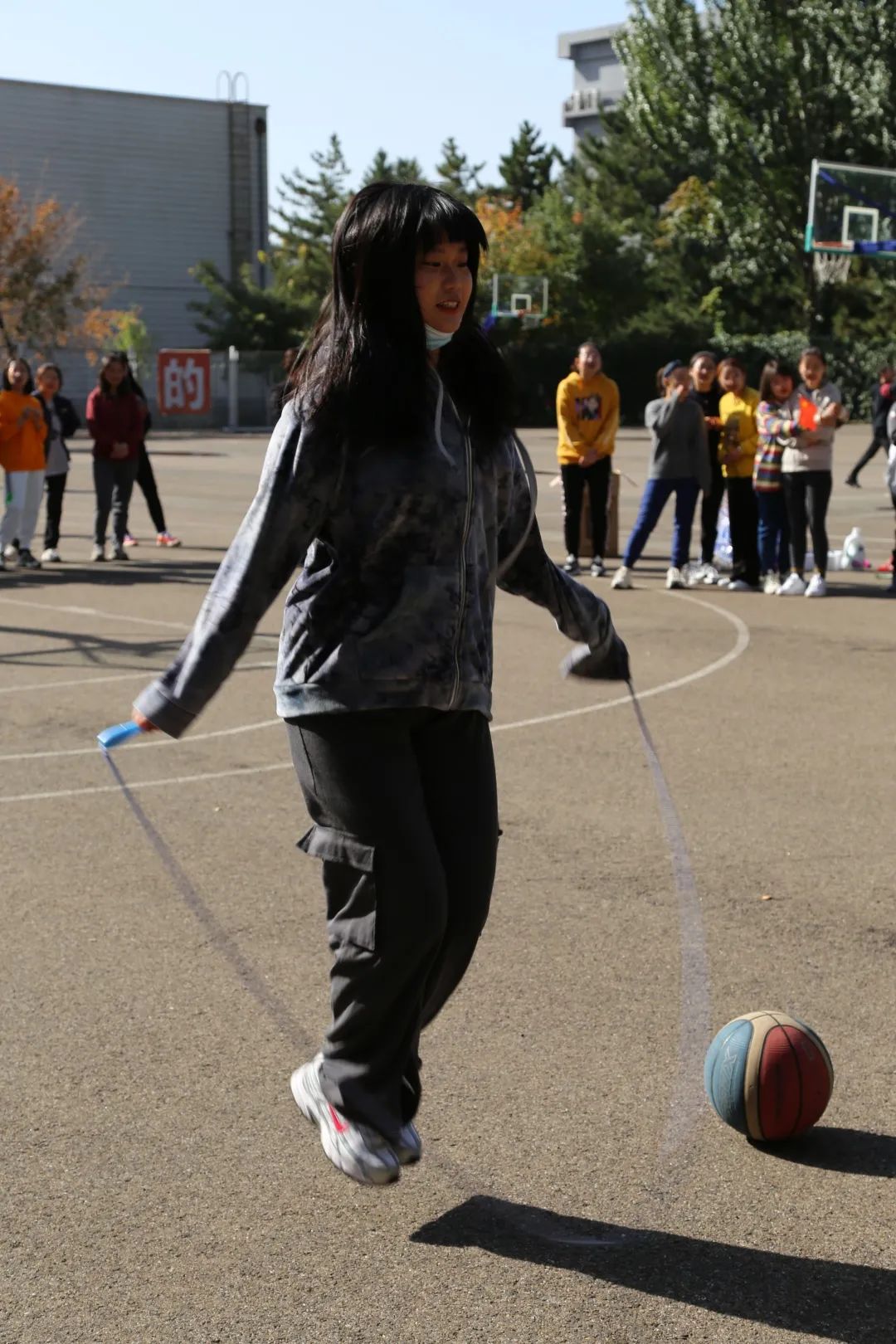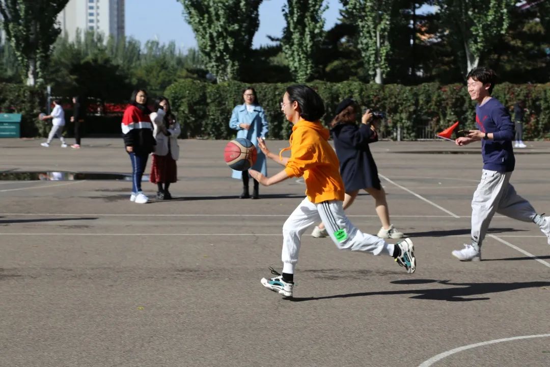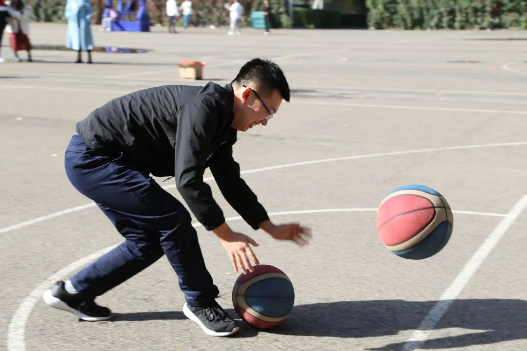 比赛在欢乐的范围中顺利进行。此次比赛共设五个项目:定点投篮;背靠背带球跑;趣味篮球接力;跳绳篮球;4V4对抗赛。同学们纵情投入,努力拼搏,赛场上你争我夺。赛出了友谊,赛出了风采。