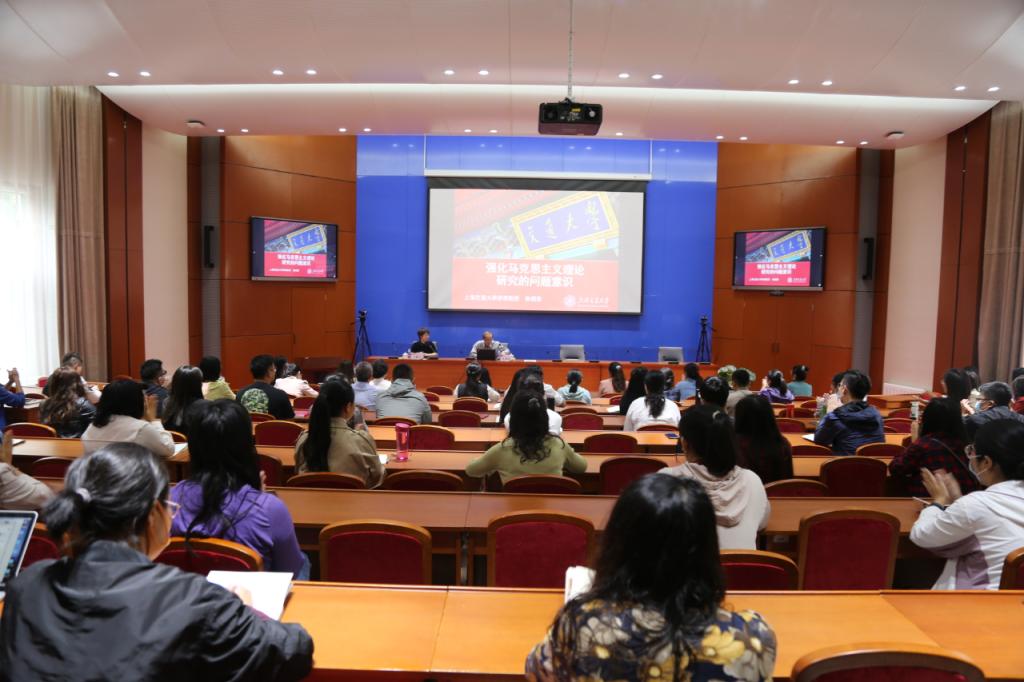 本次讲座,陈教授主要围绕问题的缘起和问题导向的路径两个主要的方面分享了马克思主义理论研究的问题意识。他首先从思想政治理论课教师队伍的当务之急、马理论学科建设存在的不足、青年教师与研究生培养的三大意识和学术论文与课题申报中存在的通病四个方面的内容深入浅出的分享了他对于马克思主义理论研究的深刻思考和高度概括。其次,他又引用了习近平总书记的讲话中的:“理论创新的过程就是发现问题、筛选问题、研究问题、解决问题的过程。”解释了马克思主义理论学科创新的科学路径。并传授师生们要勇于发现问题:寻找“四大矛盾”、要善于筛选问题:努力聚焦“四点交集”、要深入研究问题:尽力避免“四种倾向”,最后,要科学解决问题:潜心做到“四个结合”。他强调作为思政课教师一定要把课程落实到思政课的“内涵式发展”上,避免“泛娱乐化”倾向,避免把学生当作长不大的“巨婴”。陈教授对学术研究的慎重态度,对马克思主义的深刻信仰,对学科建设的潜心研究,给全院师生作出了良好的表率。