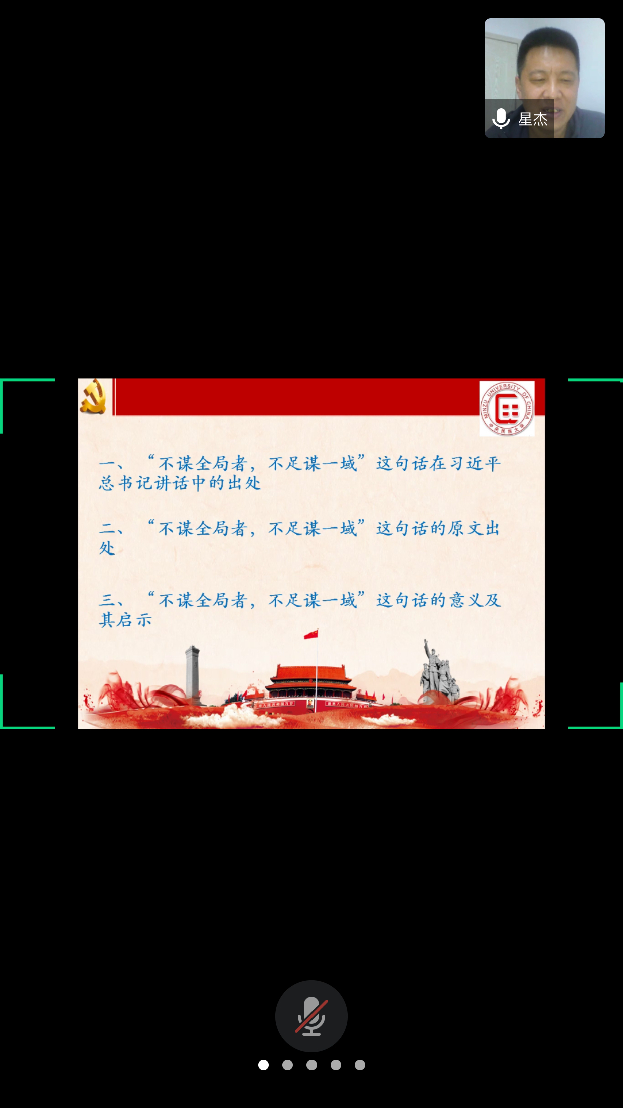 善于用典,是习近平总书记文风的一大鲜明特点。党员干部可以从习近平总书记一系列重要讲话、文章、谈话中所引用的古代典籍和经典名句中汲取精神力量。6776永利集团教工第一党支部从6月份起开展“学经典提精神”党员领学活动,每天晚上8点将由支部一名党员采用线上学习方式领学习近平总书记引用的古代典籍和经典名句。6月1日晚,支部书记许星杰首先领学了“不谋全局者,不足谋一域”这一经典名句。他从“不谋全局者,不足谋一域”这句话在习近平总书记重要讲话中的出处、“不谋全局者,不足谋一域”这句话的原文出处和“不谋全局者,不足谋一域”这句话的意义及其启示三个方面展开,结合实例进行了详细解读,并与大家分享了自己的看法。