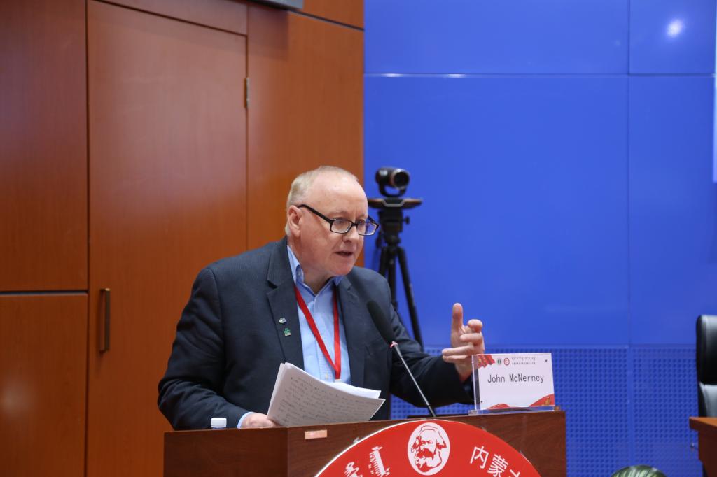 围绕本次研讨会主题,中山大学钟明华教授和都柏林大学教授 John McNerney分别作了题为“百年未有之大变局之人类文明进步的思考”和“展开的人类。语言和友谊是人类交流的绿洲“的主旨演讲。北京大学宋朝龙教授、同济大学刘勇教授、厦门大学李丹教授、天津师范大学秦龙教授、内蒙古财经大学乌峰教授分别以“金融资本的症结与社会主义制度优势的根基”、“构建人类命运共同体:中国共产党的第三个“一百年”奋斗目标”、“全球化与全球治理的中国理念: 构建人类命运共同体”、“中国特色社会主义推动构建人类命运共同体的制度优势”、“论文明视野中的人类命运共同体”为题作了主题发言。