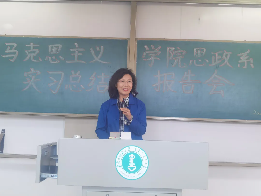 会上,2019级思想政治教育专业优秀实习生代表分别作了总结汇报。翟欢娜、李雨洁、巴达仁贵、杜琳、苏日塔拉图、段瑞嘉同学分别以《实习经验分享(教学、管理)》《于无声处听惊雷-在实习中如何从0到1的蜕变》《实习收获-教学经验与班级管理》《亲其师,信其道》《实习经验分享(深入学生日常和教学》《管理职能》为题与在场师生进行了分享交流,翟欢娜认为实习是大学生进入社会不可或缺的一场“历练”,也是所学知识与社会实践之间最为紧密的桥梁。杜林同学认为在实习过程中首先要走进学生、了解学生,其次要宽严适度,“严”要严得有理,“宽”要宽得有据,最后要学会探索与思考。苏日塔拉图同学的分享点名了让平日积累知识和经验的重要性。学生代表们的发言将理论认识与实习实践紧密结合,使同学们对教学实践有了更深入的思考。