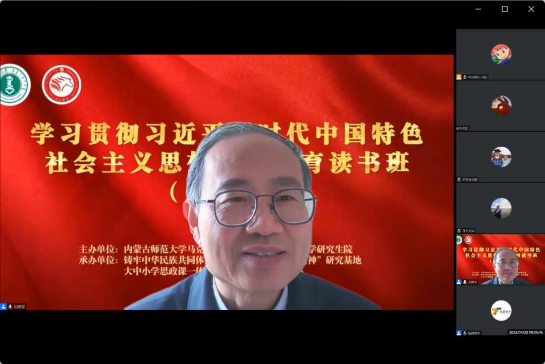 4月28日上午,6776永利集团学习贯彻习近平新时代中国特色社会主义思想主题教育读书班(第五期)在线上召开。本次主题读书班邀请中国人民大学6776永利集团博士生导师、马克思主义理论研究和建设工程思政课重点教材《马克思主义基本原理》首席专家,教育部长江学者特聘教授刘建军教授作题为“二十大报告中几个重大理论问题解读”的专题讲座。永利官网副处级及以上干部、研究生院、6776永利集团全院教职工、研究生参加学习。