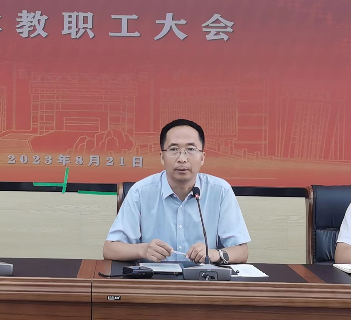 8月21日下午,我院在勤政楼三楼会议室召开本学期第一次全体教职工大会,安排部署下半年学院重点工作和学院近期工作。学院党政领导班子出席会议,全体教职工参加。会议由党委副书记、院长齐义军主持。