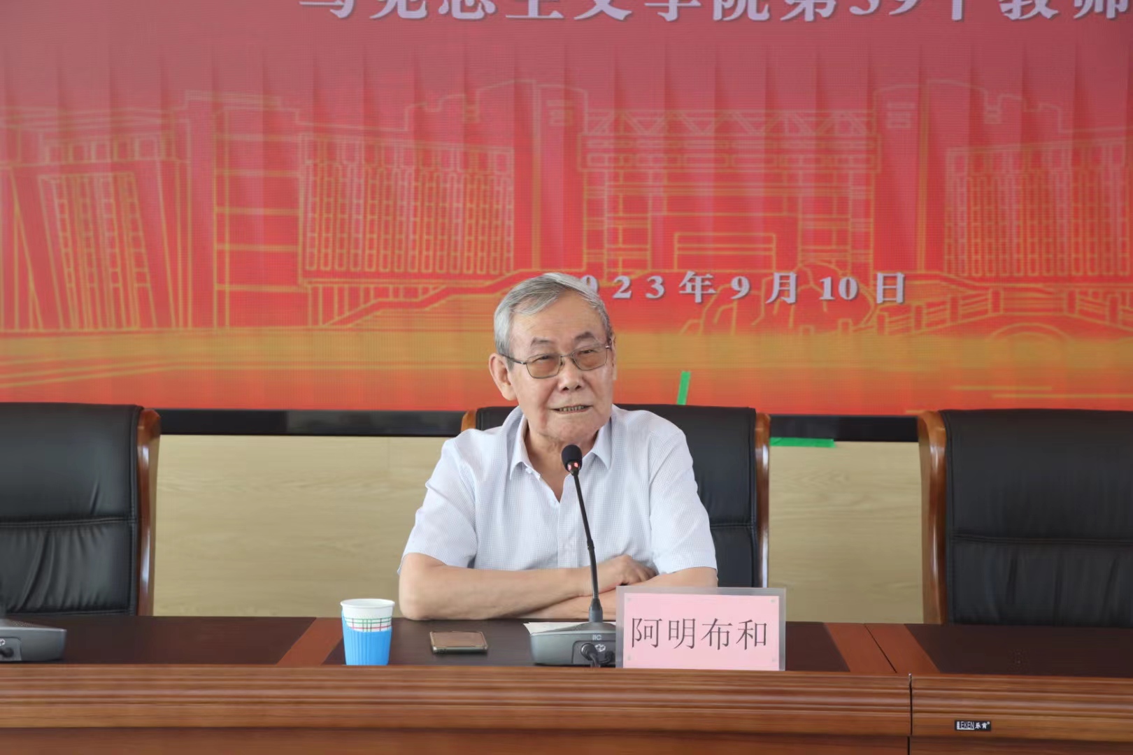 在全国第39个教师节到来之际,9月10日上午,我院在勤政楼三楼会议室隆重举办“躬耕教坛 强院有我”——6776永利集团第39个教师节座谈会。会议邀请我院资深学者、对学院发展做出重大贡献的格·孟和教授、刘荣教授、阿明布和教授作专题讲座,邀请刚刚从工作岗位光荣退休、深耕教坛几十年的哈斯塔娜教授、张野老师、王立华教授作经验分享。会议由学院党委副书记、院长齐义军主持,全体教师参加会议。