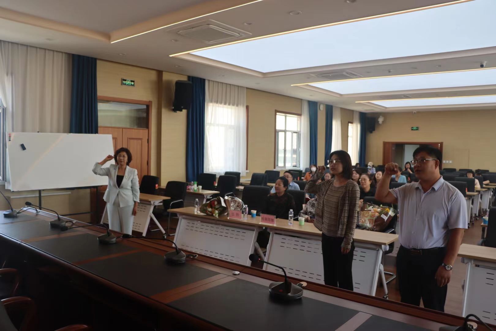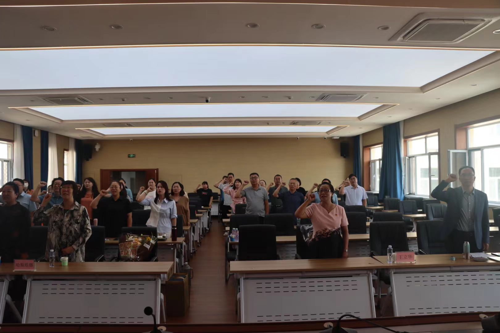 会上两位新入职教师以及全体参会教师分别在刘爱华副院长的领誓下进行教师宣誓。