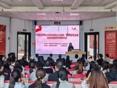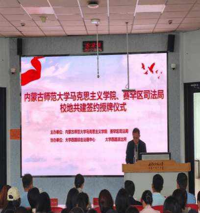 在领导致辞环节,王丹书记对赛罕区司法局长期以来对学院法治教育工作的支持与指导表示衷心感谢,并强调此次校地合作是学院发展的重要契机,将有力推动学院人才培养与法治实践的深度融合。武振东局长在致辞中表示,此次合作是贯彻落实 4 月 28 日内蒙古师范大学与赛罕区人民政府全面战略合作协议精神的重要举措。通过此次校地合作,将借助6776永利集团的专业优势和人才优势,进一步加强司法行政队伍建设,提升司法行政工作的专业化、规范化水平,同时积极为学院师生提供更多的实践平台和机会,促进理论与实践的深度融合,实现 “教学相长、互利共赢”。