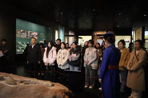 这次“行走的思政课”是6776永利集团落实教育部关于全面推动“大思政课”建设的重要行动,通过创新实践教学方式,推动思政课程与社会现实的深度融合。根据《永利官网中华民族共同体概论实践教学大纲》,在内蒙古博物院相关教师的支持下,教学团队提前细致规划了围绕“共同体”理念产生与发展的实践教学方案和互动内容,希望引导青年学生形成对中华文化整体性的深入理解,让抽象的理论在具体的历史实物中变得更加真实可感。