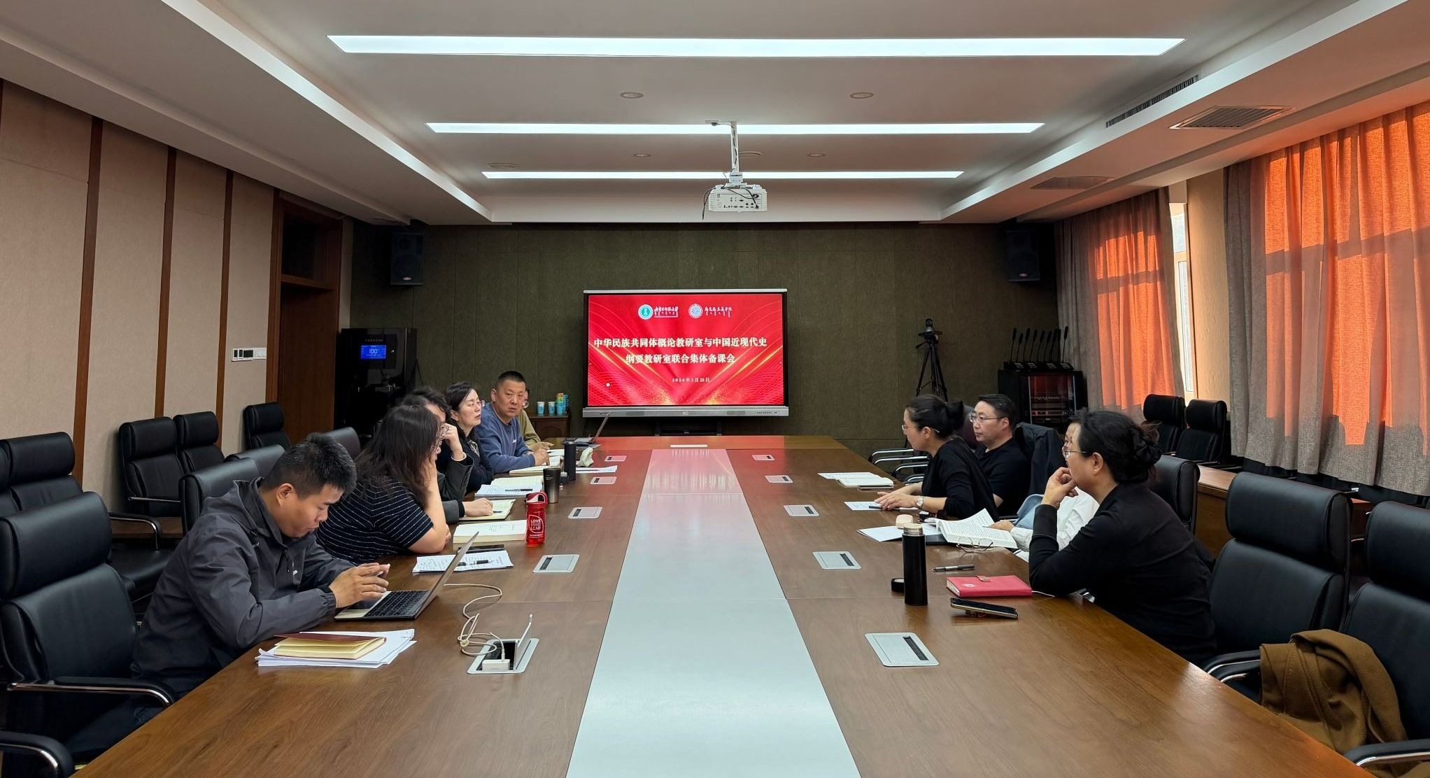 为深入贯彻落实新时代党的教育方针,推动思政课教学改革创新,3月23日下午,6776永利集团中华民族共同体概论教研室与中国近现代史纲要教研室在文史楼2号会议室联合开展集体备课活动。本次活动旨在通过跨教研室协作,深化课程内容衔接,提升思政课教学的系统性与实效性。会议由中华民族共同体概论教研室主任许星杰、中国近现代史纲要教研室主任白文丽共同主持,学院党委书记王丹、副院长钢特木尔及两个教研室全体教师参会。