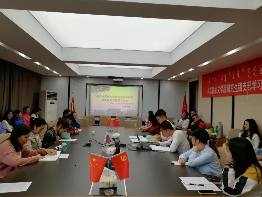 为迎接新中国成立70周年,按照学校党委的安排和校团委的统一部署,我院于9月19日下午在赛罕区行政楼507会议室开展了学习《中华人民共和国国旗法》专题团日活动。团总支书记范晓刚老师及全体研究生参加了本次活动。