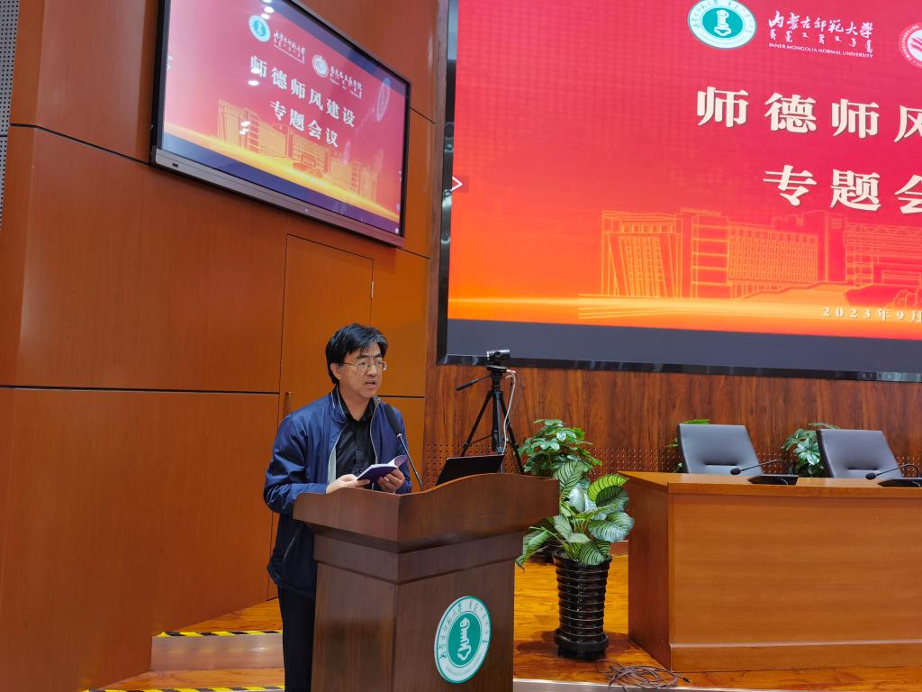张瑞军强调,教师队伍建设是教育强国建设的重要抓手,师德师风直接影响教师队伍整体素质,关乎培养什么人、怎样培养人、为谁培养人这个教育的根本问题,关乎立德树人根本任务的落实,关乎培养社会主义建设者和接班人的使命和担当。他要求,学院全体教师要严格遵守高校教师行为准则,遵守学校教师行为规范制度,大力弘扬教育家精神,陶冶言为士则、行为世范的道德情操,努力做“经师”和“人师”的统一者。