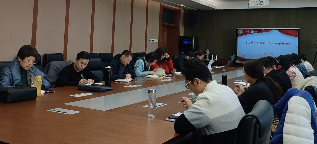 12月4日,我院教工第一党支部在文史楼2号会议室召开党员大会,深入学习贯彻党的二十届三中全会精神、传达学习近期校党委、学院党委重要会议精神。会议邀请我院党委书记出席,并与一支部全体党员开展党建工作交流座谈。会议由支部书记高慧媛主持。