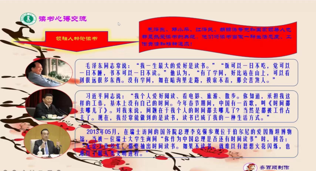 齐百顺教授围绕何为读书、为何读书、如何读书这三部分与大家进行交流分享。