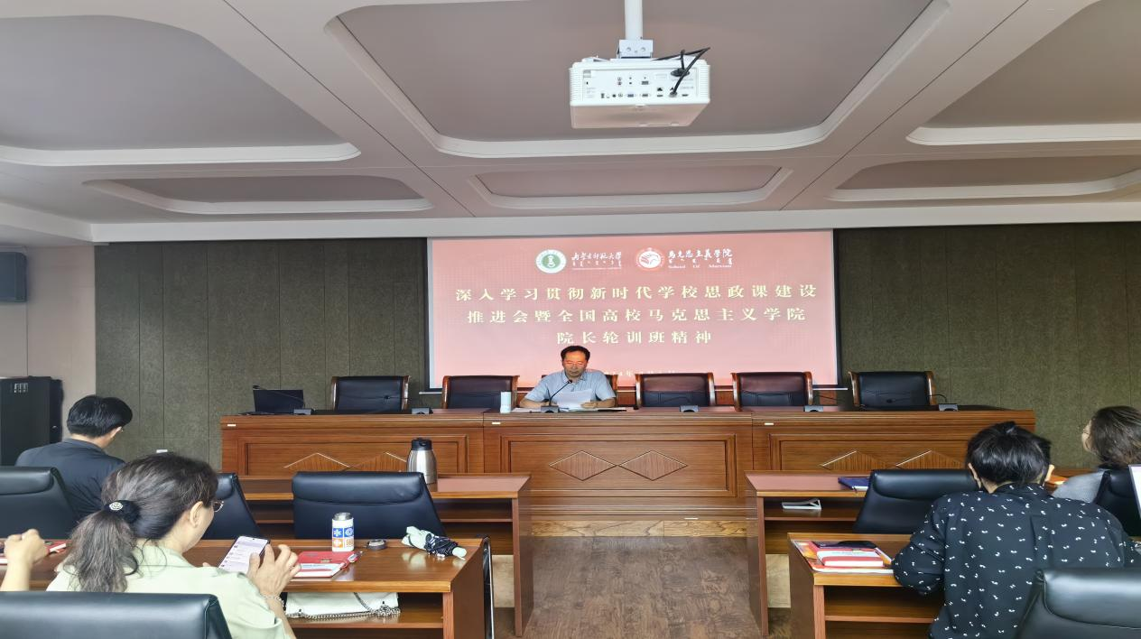 根据教育部社科司统一部署安排,齐义军传达学习了全国高校6776永利集团院长轮训班精神,重点学习了翁铁慧副部长、洪大用副部长和顾海良教授、靳诺教授、王炳林教授、颜晓峰教授等专家的讲课要点。结合学院发展规划,对如何补齐思政课教师理论功底短板、实践素养短板、教学法短板、“四史”短板和学情短板等与全院教师进行了深入交流。强调学院将进一步加强制度建设和执行力度,强化马克思主义学科建设,加大集体备课、师资培训、实践研修、挂职锻炼、访学进修力度,试行兼职辅导员制度,紧扣新时代新征程新使命,持续展现新气象新作为。