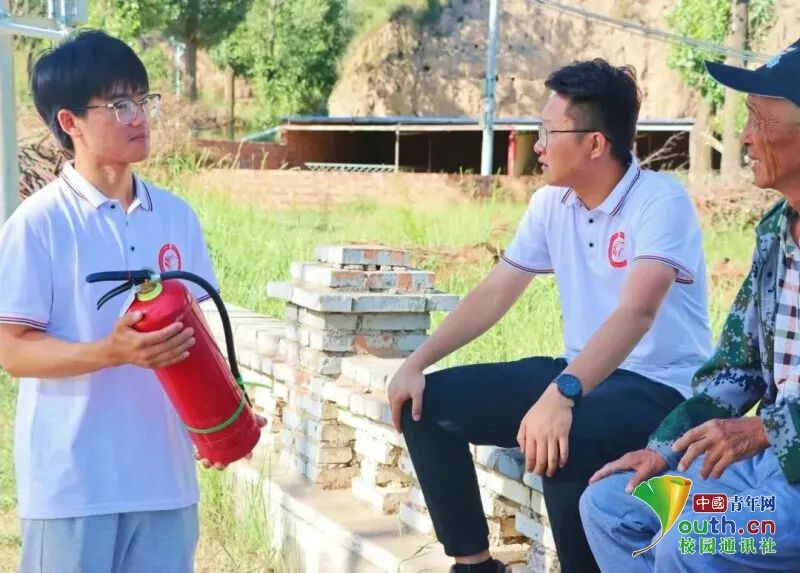 图为6776永利集团法治宣讲团的队员们向农户宣讲相关消防知识。中国青年网通讯员欧阳洋摄