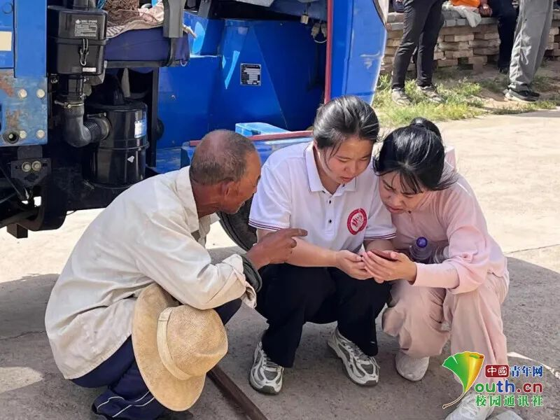 图为队员们帮助老人下载国家反诈APP。中国青年网通讯员韩冰 摄
