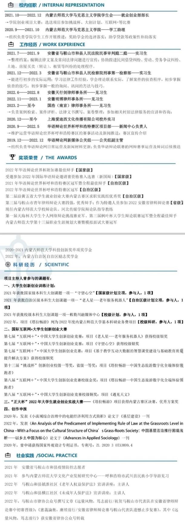 为贯彻《内蒙古自治区教育厅关于做好2023届全区普通高校毕业生就业创业工作的通知》(内教办便函〔2022〕144号)精神,进一步提升大学生职业素质和求职能力,普及简历制作基本理念,提高就业竞争力,第三届“位来杯”内蒙古自治区大学生视频简历大赛成功举办,我院学子焦凤冉荣获“位来杯”校级优秀奖,童臻尧荣获“位来杯”校级二等奖及区级三等奖!