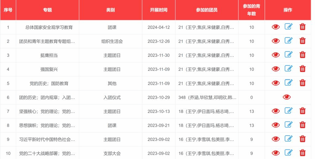 着力打造“学习型、先进型、服务型”团组织,经过近一年的团支部工作,同学们的思想认识水平得到了普遍提高,个人理论修养水平正向系统化迈进。我们团支部成员一致认为在今后的学习生活中,团支部的整体思想水平会到达一个新的高度。团的组织建设是共青团工作的基础和保障。团支部组建后,结合团支部的特点,采取了一系列的措施,开展了一系列的团建工作:一是通过摸底迅速完成了团员花名册、团员登记表、团费收缴情况登记表等信息档案。
