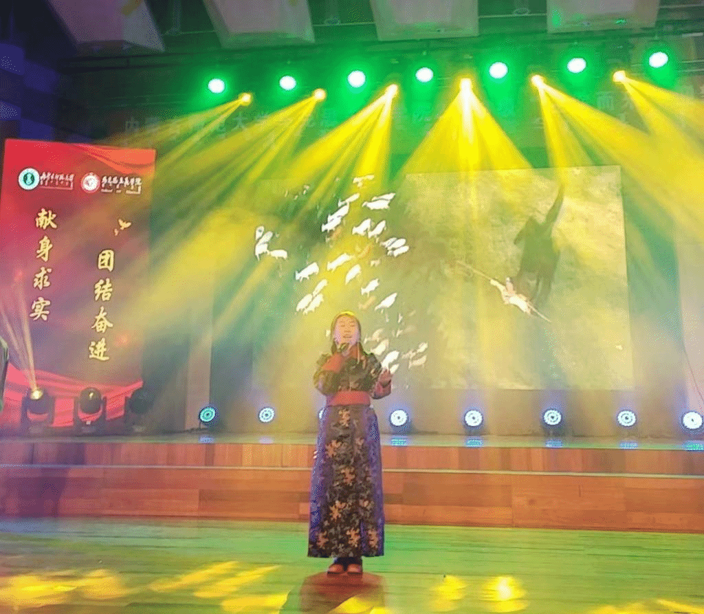 在学院迎新晚会上,我班班级同学积极参加舞蹈演出以及歌曲演唱,我班郝月、王宁、杨志琦、萨日娜、于乐、贺晓慧等12同学参加《被罩舞》,嘎力班同学带来歌曲。