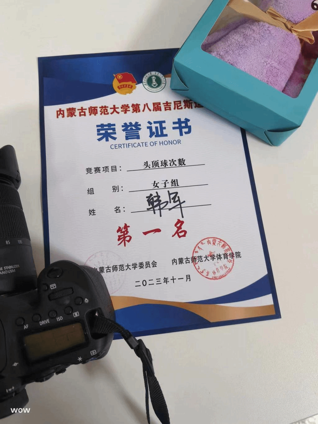 永利官网第八届吉尼斯运动会头顶球次数第一名(2023年11月)