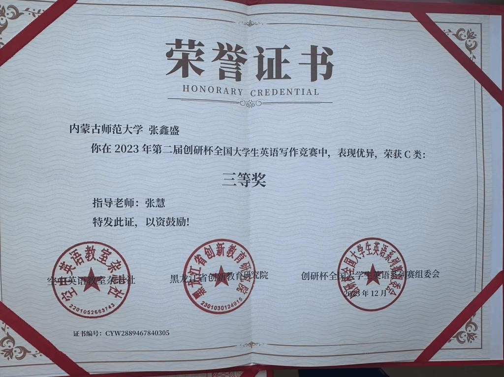 2023年第二届创研杯全国大学生英语写作竞赛c类三等奖(2023年12月)