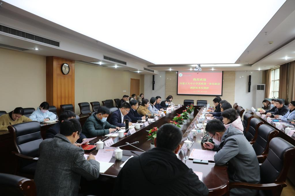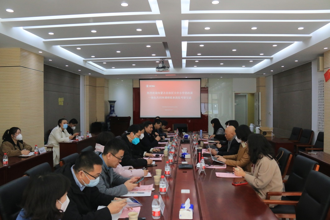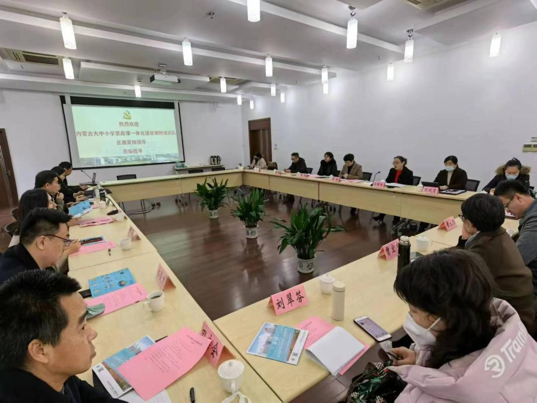 2月16日下午,调研组一行来到华东师范大学第一附属中学实地考察学习。与虹口区教育局分管领导、相关负责人、华东师范大学第一附属中学领导、教师代表等进行座谈交流。虹口区教育局副局长李琰介绍了虹口区大中小学思政课一体化共同体建设情况,华东师范大学第一附属中学党总支书记王新介绍了学校参与大中小学思政课一体化建设情况,全国思政课名师陈明青就思政课教学、教研和课程开发等作了交流。通过考察交流,调研组深入了解了上海市大中小学思政课一体化共同体在集体备课教研、品牌活动创建、年度报告编撰、联席会议制度设立等方面所做的开拓及创新,为内蒙古大中小学思政课一体化共同体建设提供了宝贵的经验和启示。