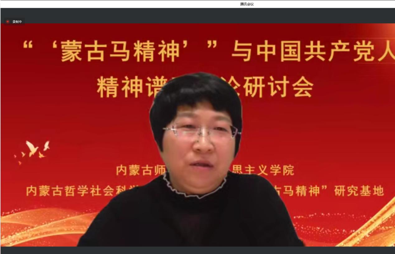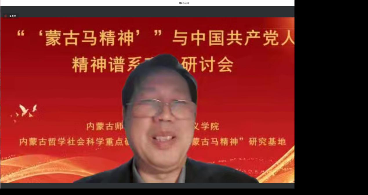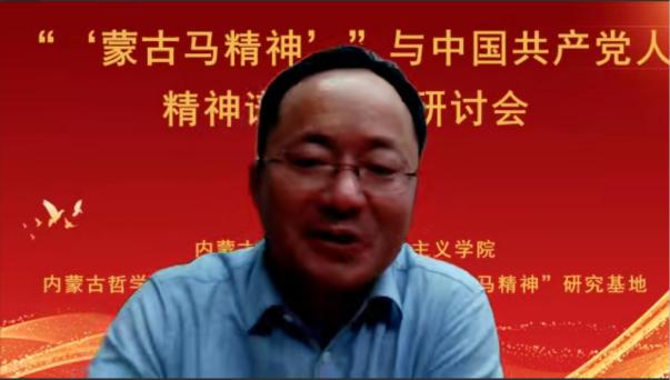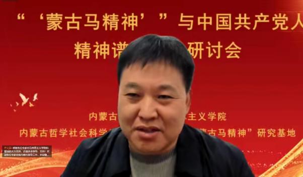 张志丹教授从意识形态的角度阐释了“蒙古马精神”与中国共产党人精神谱系的关系,指明了弘扬“蒙古马精神”坚持马克思主义理论指导的重要性;赵勇教授以“‘蒙古马精神’与百年大党革命精神”为题,从“怎么看”“怎么办”两个方面,阐明了二者的结构性、功能性、发展性关联,强调了深化拓展、学理研究和专题化教学的重要性;刘勇教授基于大历史观视角,拓展了“蒙古马精神”的研究视野,强调了应该将“蒙古马精神”放置中华民族千年文明史中、放置“四史”中、放置中国共产党人的精神谱系形成过程中、放置大中小学思政教育一体化格局中去理解认识;张瑞军副教授聚焦“蒙古马精神”的本质特质主动性,从蒙古马精神的思想建构以中国特色社会主义实践作为存在论基础、以实现人民的美好生活需要为价值关切、以把握历史规律坚持主动作为为主体要求三个方面进行了阐释。