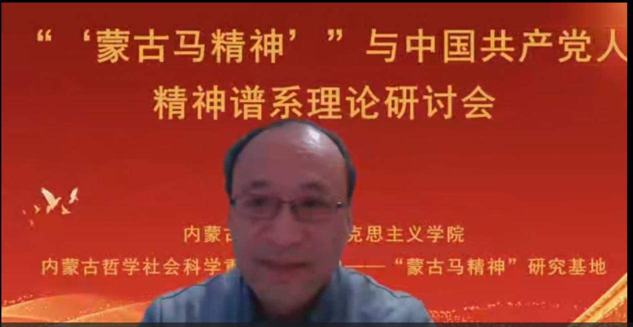 徐光寿教授从“蒙古马精神”是中华优秀传统文化的一部分、“蒙古马精神”纵贯了百年党史,践行了伟大建党精神、新时代新征程需要大力弘扬以奋斗精神为主题的“蒙古马精神”、蒙古马精神受到党和国家领导人的高度重视四个方面阐释了“蒙古马精神”应该写入中国共产党人精神谱系的必要性;赵庆寺教授从如何阐释丰富内涵、如何坚持精神引领、如何推进创新转化、如何结合实际践行四个方面说明了“蒙古马精神”与中国共产党人精神谱系的关系;徐国民教授以“中国共产党人精神谱系的动力学分析”为题,从文化基因的精神传承、民族共同体的集中体现、马克思主义的理论指导和精神力量的实践外化进行了阐释;李春晖教授细数了“蒙古马精神”的提出过程,解析了“蒙古马精神”的内涵和外延,呈现了“蒙古马精神”的未来研究趋势。